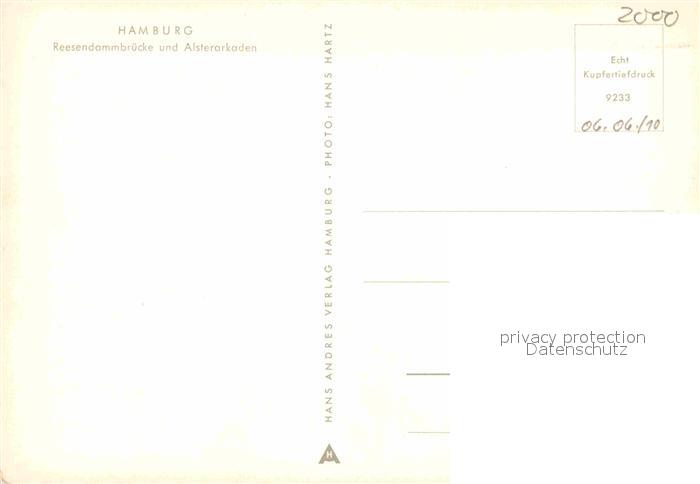 72918007 HAMBURG CITY Reesendammbruecke und Alterarkaden postalisch nicht gelaufen Erhaltung siehe scans [WerneD78] KatCode: 11110002000000
