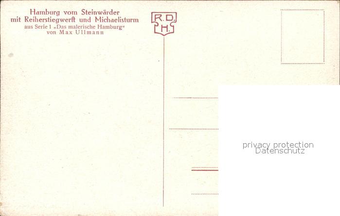 71832644 HAMBURG CITY Reiherstiegwerft Michaelisturm Kuenstlerkarte Max Ullmann postalisch nicht gelaufen Erhaltung siehe scans KatCode: 11110002000000