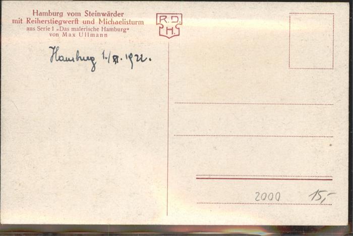 41054629 HAMBURG CITY Reiherstiegwerk Michaelisturm Kuenstler Max Ullmann postalisch nicht gelaufen Alte Ansichtskarte Postkarte Elvi Katcode 11110002000000