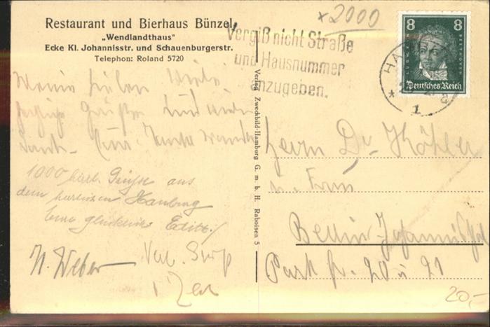 41054904 HAMBURG CITY Restaurant Bierhaus Buenzel postalisch gelaufen Alte Ansichtskarte Postkarte alte Postkarte Elvi Katcode 11110002000000