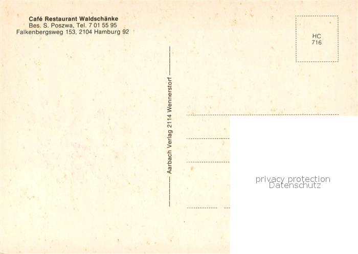 73731712 HAMBURG CITY Restaurant-Cafe Waldschaenke Aussenansicht postalisch nicht gelaufen Erhaltung siehe scans [LiesaD40] Lies Katcode 11110002000000