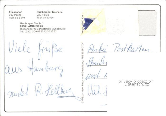 72419359 alte Postkarte HAMBURG CITY Restaurant Friesenhof postalisch gelaufen Erhaltung siehe scans KatCode: 11110002000000