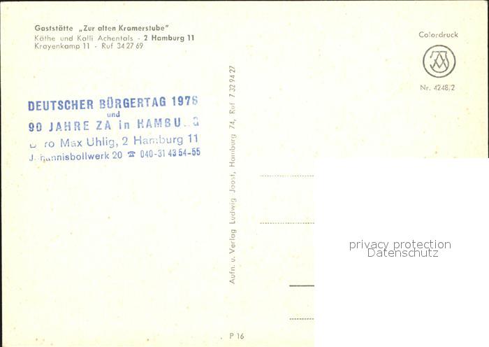 72495507 HAMBURG CITY Restaurant Zur alten Kramerstube Kramer-Amtswohnungen postalisch nicht gelaufen Erhaltung siehe scans KatCode: 11110002000000