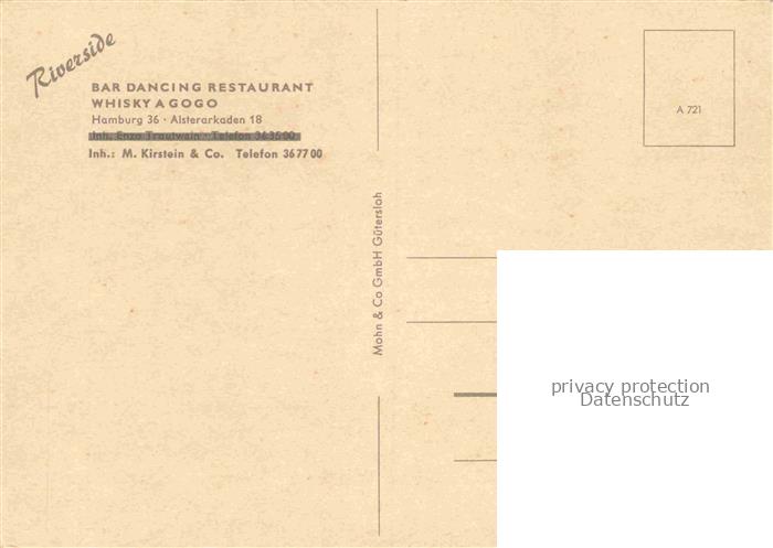 74059419 HAMBURG CITY Riverside Bar Dancing Restaurant postalisch nicht gelaufen Erhaltung siehe scans [WerneD78] Wern Katcode 11110002000000