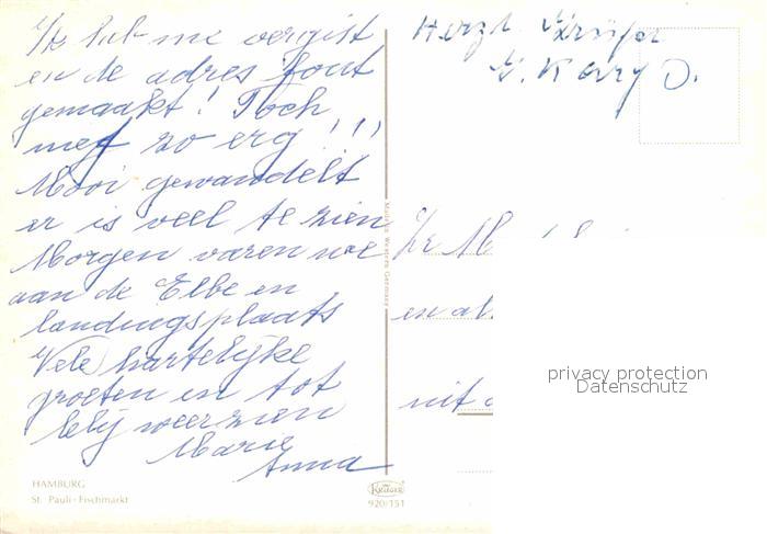 72729800 HAMBURG CITY Sankt Pauli Fischmarkt postalisch nicht gelaufen Erhaltung siehe scans [AndreD76] KatCode: 11110002000000