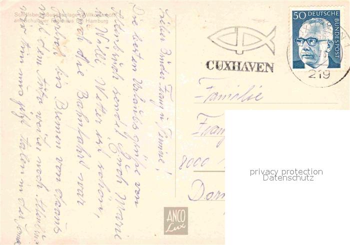 72725909 alte Postkarte HAMBURG CITY Schiffsbegruessungsanlage Willkommhoeft am Schulauer Faehrhaus postalisch gelaufen Erhaltung siehe scans [WerneD78] KatCode: 11110002000000