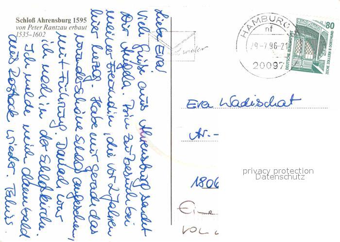 72654420 alte Postkarte HAMBURG CITY Schloss Ahrensburg postalisch gelaufen Erhaltung siehe scans [WerneD78] KatCode: 11110002000000