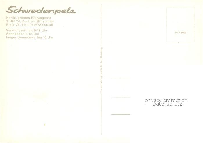73865058 HAMBURG CITY Schwedenpelz Norddeutschlands groesstes Pelzangebot postalisch nicht gelaufen Erhaltung siehe scans [FriedD77] Frie Katcode 11110002000000