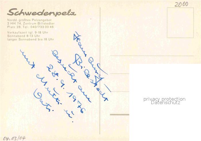 72909414 HAMBURG CITY Schwedenpelz Pelzschneiderei postalisch nicht gelaufen Erhaltung siehe scans [LiesaD40] KatCode: 11110002000000