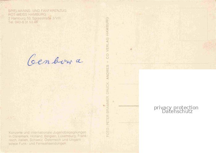 74154696 HAMBURG CITY Spielmanns und Fanfarenzug Rot Weiss Hamburg postalisch nicht gelaufen Erhaltung siehe scans [WerneD78] KatCode: 11110002000000