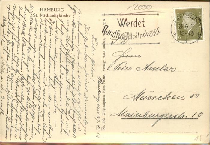 41055149 HAMBURG CITY St. Michaeliskirche postalisch gelaufen Alte Ansichtskarte Postkarte alte Postkarte Ulri Katcode 11110002000000