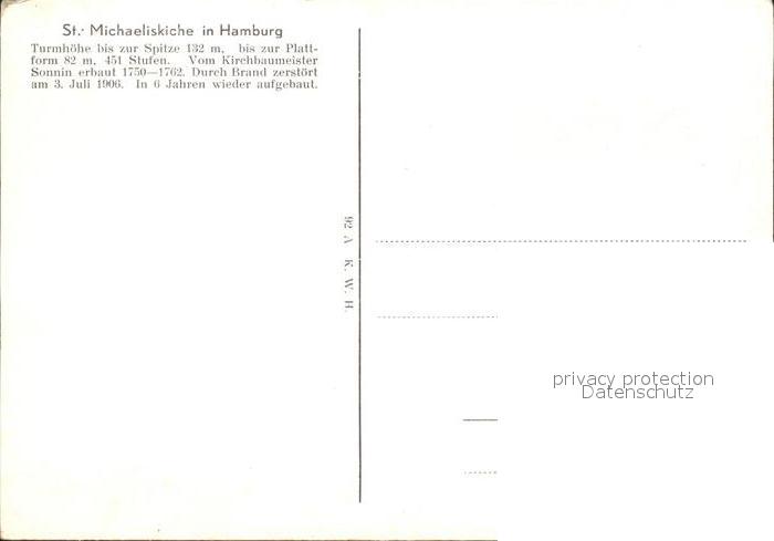 72303289 HAMBURG CITY St. Michaeliskirche postalisch nicht gelaufen Erhaltung siehe scans KatCode: 11110002000000