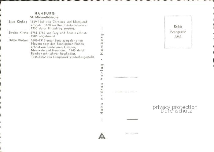 72152424 HAMBURG CITY St Michaeliskirche postalisch nicht gelaufen Erhaltung siehe scans KatCode: 11110002000000