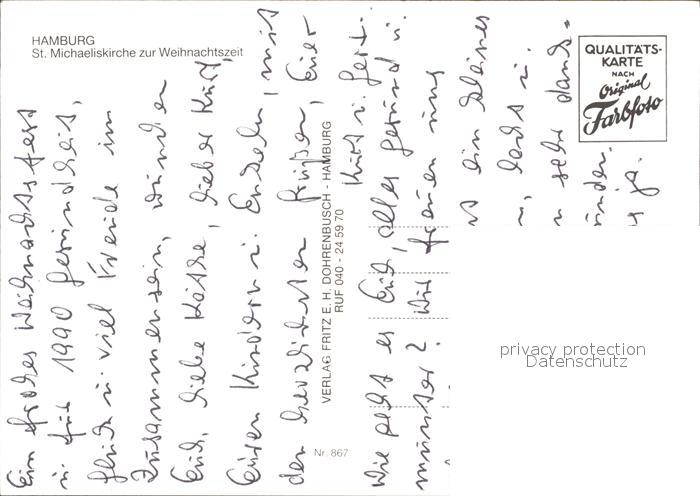 72253741 HAMBURG CITY St Michaeliskirche zur Weihnachtszeit Christbaum postalisch nicht gelaufen Erhaltung siehe scans KatCode: 11110002000000