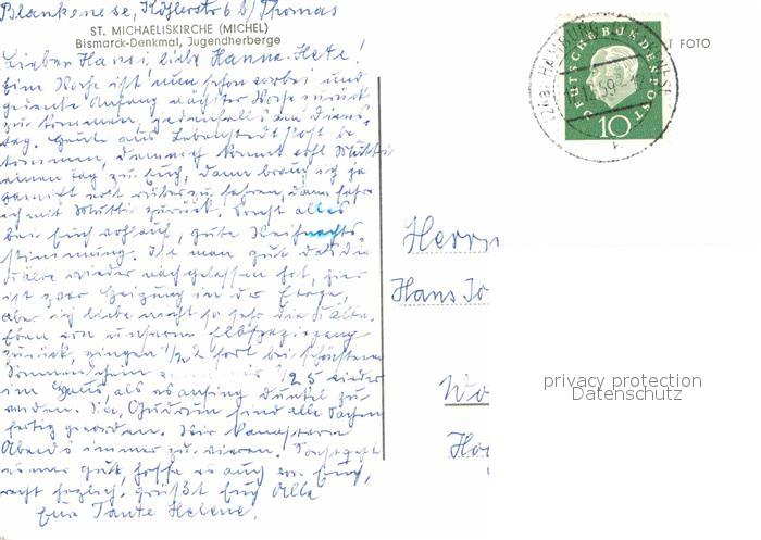 72915420 alte Postkarte HAMBURG CITY St Michaelskirche Bismarck Denkmal Jugendherberge postalisch gelaufen Erhaltung siehe scans [WerneD78] KatCode: 11110002000000