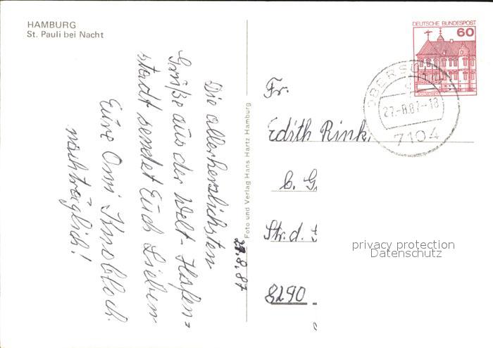 72525310 alte Postkarte HAMBURG CITY St Pauli bei Nacht Details postalisch gelaufen Erhaltung siehe scans KatCode: 11110002000000