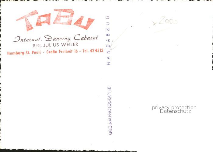 42060821 HAMBURG CITY St. Pauli Dancing Cabaret Tabu Julius Weiler postalisch nicht gelaufen Erhaltung siehe scans Alte Ansichtskarte Postkarte Lies Katcode 11110002000000