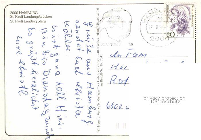 72769767 alte Postkarte HAMBURG CITY St. Pauli Landungsbruecken Dampfer postalisch gelaufen Erhaltung siehe scans [NatalD47] KatCode: 11110002000000
