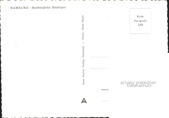 72008502 HAMBURG CITY Staatsoper postalisch nicht gelaufen Erhaltung siehe scans KatCode: 11110002000000