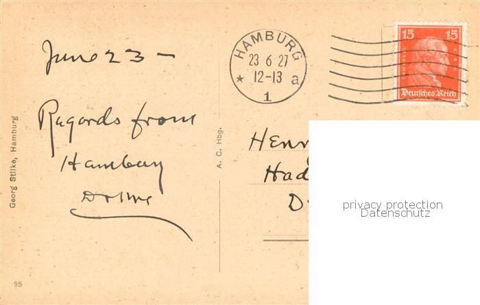 73767057 HAMBURG CITY Staatspark Wasserturm postalisch gelaufen Erhaltung siehe scans [WerneD78] alte Postkarte Wern Katcode 11110002000000