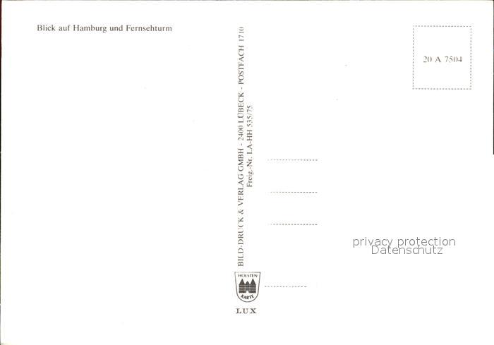 72483009 HAMBURG CITY Stadtbild mit Fernsehturm Fliegeraufnahme postalisch nicht gelaufen Erhaltung siehe scans KatCode: 11110002000000