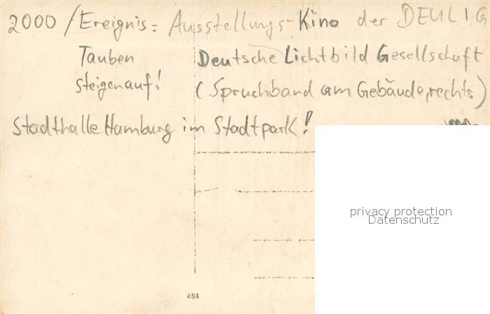 73710409 HAMBURG CITY Stadthalle im Stadtpark Tauben steigen auf postalisch nicht gelaufen Erhaltung siehe scans [LiesaD40] Lies Katcode 11110002000000