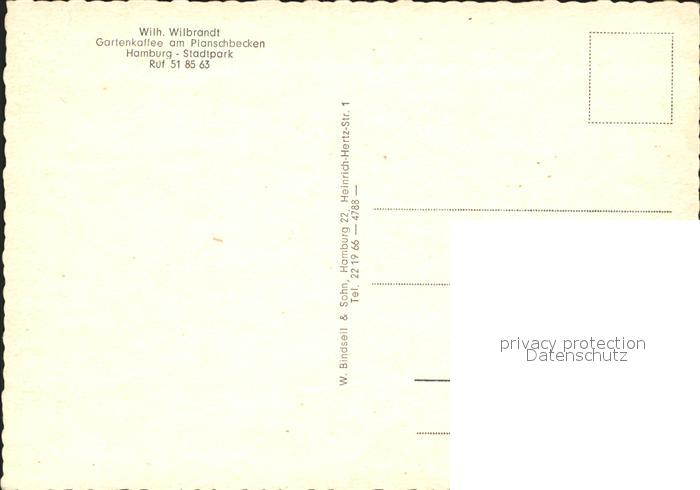 72177272 HAMBURG CITY Stadtpark Gartenkaffee am Planschbecken postalisch nicht gelaufen Erhaltung siehe scans KatCode: 11110002000000