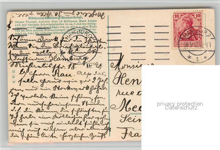 43491428 HAMBURG CITY Steinw?rder Elbtunnel postalisch gelaufen Erhaltung siehe scans [LiesaD40] alte Postkarte Lies Katcode 11110002000000