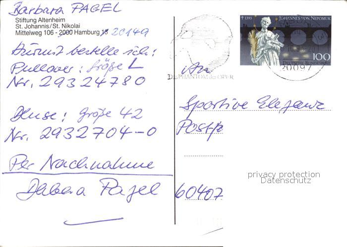 72539319 alte Postkarte HAMBURG CITY Stiftung Altemheim Sankt Johannis Sankt Nikolai postalisch gelaufen Erhaltung siehe scans [AndreD76 kt119box] KatCode: 11110002000000