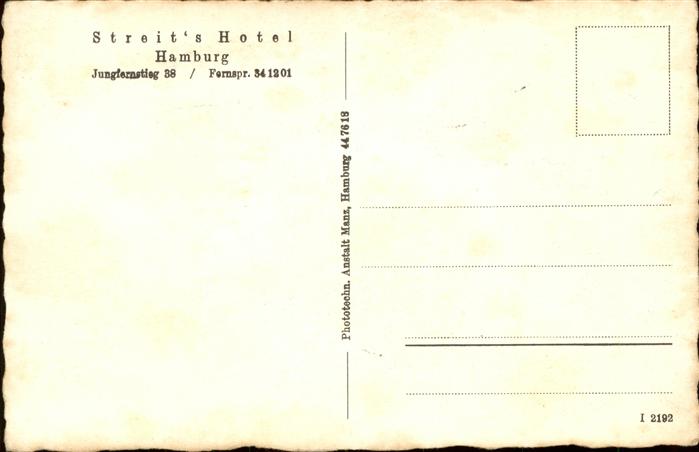 41215676 HAMBURG CITY Streit`s Hotel postalisch nicht gelaufen gute Erhaltung Alte Ansichtskarte Postkarte hz_U Katcode 11110002000000