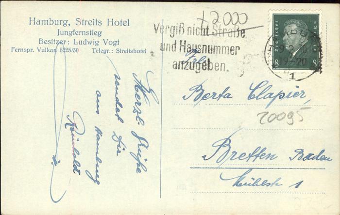41207380 HAMBURG CITY Streits Hotel 5-Uhr-Tee-Saal postalisch gelaufen gute Erhaltung Alte Ansichtskarte Postkarte alte Postkarte hz_C Katcode 11110002000000