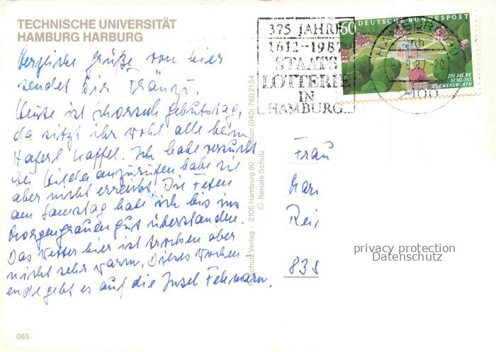 74095611 HAMBURG CITY Technische Universitaet Harburg postalisch gelaufen Erhaltung siehe scans [WerneD78] alte Postkarte Wern Katcode 11110002000000