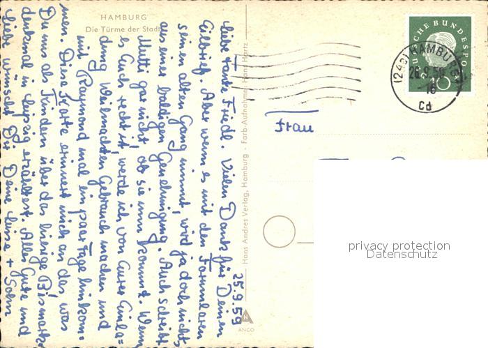 72568336 alte Postkarte HAMBURG CITY Tuerme der Stadt postalisch gelaufen Erhaltung siehe scans [LiesaD40] KatCode: 11110002000000