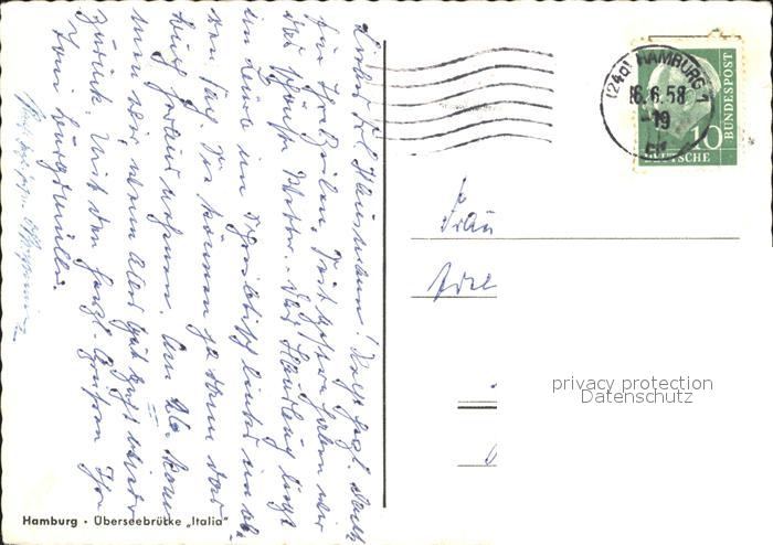 72170535 alte Postkarte HAMBURG CITY ueberseebruecke Italia postalisch gelaufen Erhaltung siehe scans KatCode: 11110002000000