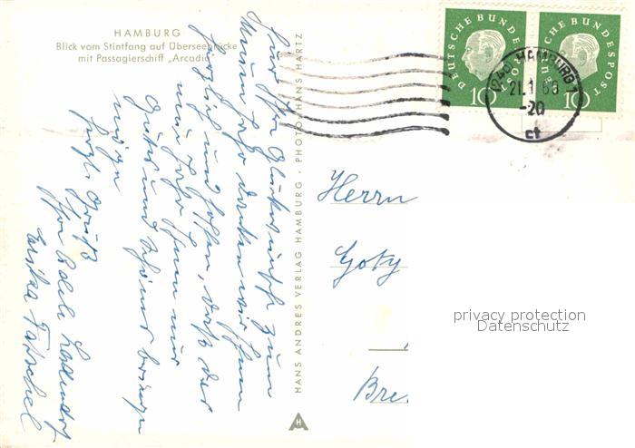 72758376 alte Postkarte HAMBURG CITY ueberseebruecke Passagierschiff Arcadia postalisch gelaufen Erhaltung siehe scans [KathaD81] KatCode: 11110002000000