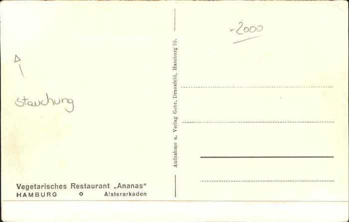 41207299 HAMBURG CITY Vegetarisches Restaurant Ananas postalisch nicht gelaufen Erhaltung mit Maengel Alte Ansichtskarte Postkarte hz_C Katcode 11110002000000