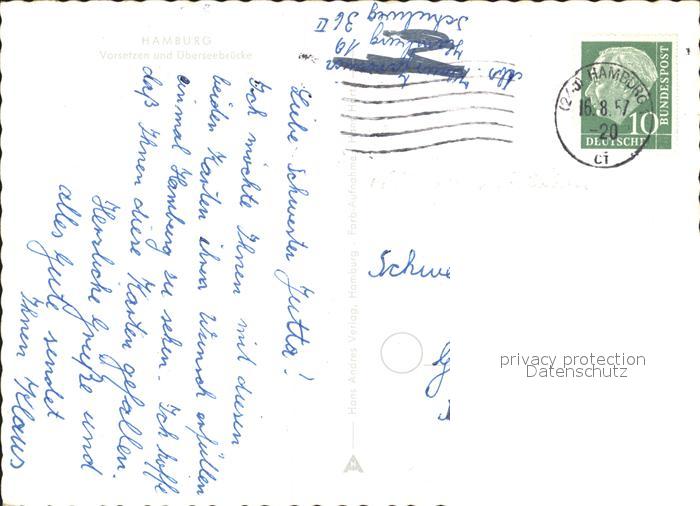 72376255 alte Postkarte HAMBURG CITY Vorsetzen ueberseebruecke postalisch gelaufen Erhaltung siehe scans KatCode: 11110002000000