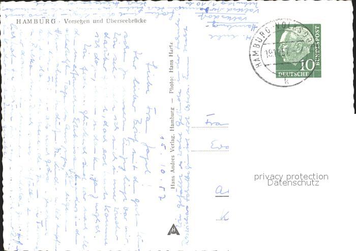 72120077 alte Postkarte HAMBURG CITY Vorsetzen und ueberseebruecke postalisch gelaufen Erhaltung siehe scans KatCode: 11110002000000