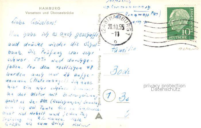 43366836 HAMBURG CITY Vorsetzen und ueberseebruecke Hafen postalisch gelaufen Erhaltung siehe scans [FriedD77] alte Postkarte Frie Katcode 11110002000000