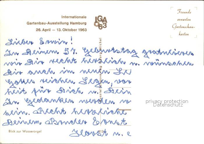 72370221 HAMBURG CITY Wasserorgel Gartenbauausstellung postalisch nicht gelaufen Erhaltung siehe scans KatCode: 11110002000000