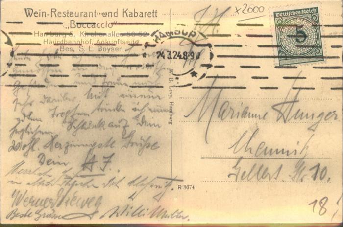 41055372 HAMBURG CITY Wein-Restaurant Boccaccio postalisch gelaufen Alte Ansichtskarte Postkarte alte Postkarte Ulri Katcode 11110002000000