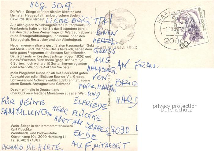 73684249 HAMBURG CITY Weinstiege in den Krameramtshaeusern postalisch gelaufen Erhaltung siehe scans [LiesaD40] alte Postkarte Lies Katcode 11110002000000