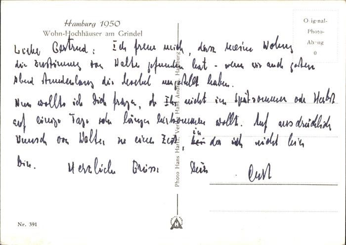 41215702 HAMBURG CITY Wohnhochhaeuser Grindel postalisch gelaufen gute Erhaltung Alte Ansichtskarte Postkarte alte Postkarte hz_U Katcode 11110002000000