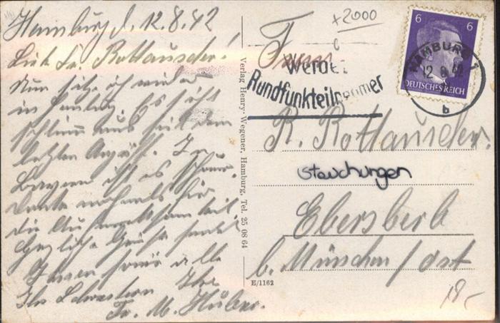 41054739 HAMBURG CITY Wuerzburger Hofbraeu postalisch gelaufen Alte Ansichtskarte Postkarte alte Postkarte Elvi Katcode 11110002000000