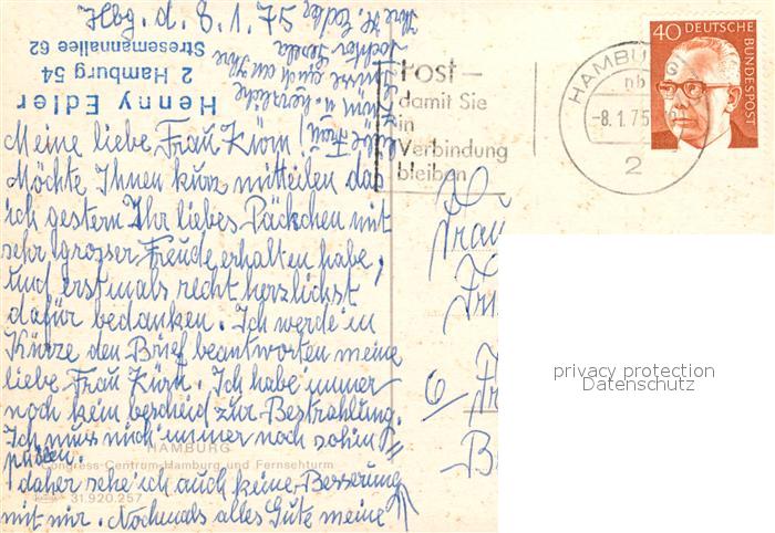 73122351 alte Postkarte Hamburg Congress Centrum Fernsehturm postalisch gelaufen Erhaltung siehe scans [KathaD81] KatCode: 11110002000000
