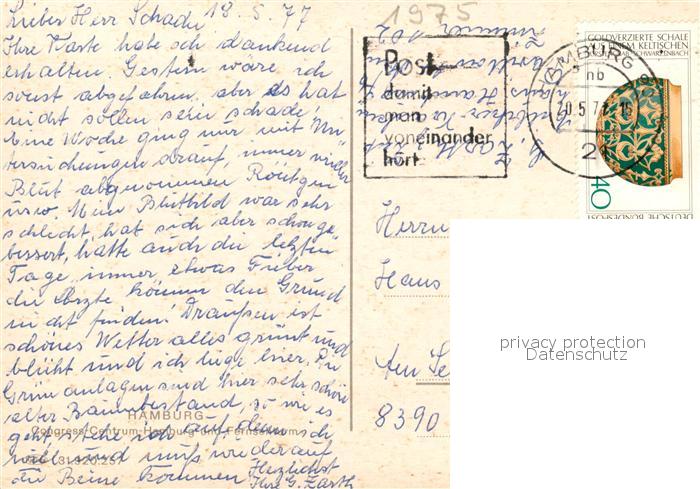 73063214 alte Postkarte Hamburg Congress Centrum Hamburg und Fernsehturm postalisch gelaufen Erhaltung siehe scans [FriedD77] KatCode: 11110002000000