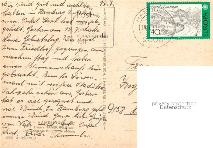 72976146 alte Postkarte Hamburg Congresszentrum Hotel Loews postalisch gelaufen Erhaltung siehe scans [LiesaD40] KatCode: 11110002000000