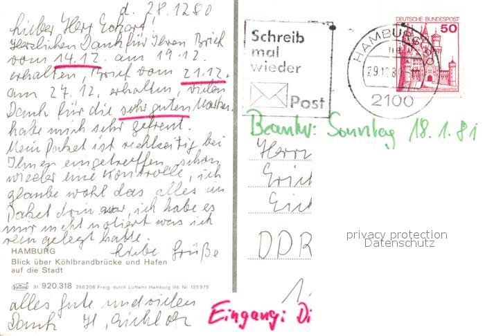 73322292 alte Postkarte Hamburg Fliegeraufnahme postalisch gelaufen Erhaltung siehe scans [KathaD81] KatCode: 11110002000000