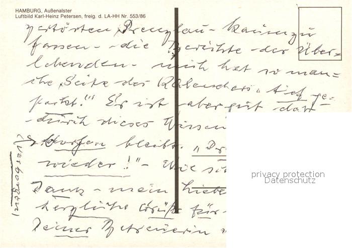 73166000 Hamburg Fliegeraufnahme Aussenalster postalisch nicht gelaufen Erhaltung siehe scans [KathaD81] KatCode: 11110002000000