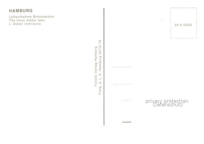 73244718 Hamburg Fliegeraufnahme Binnenalster mit Ffernsehturm postalisch nicht gelaufen Erhaltung siehe scans [LiesaD40] KatCode: 11110002000000